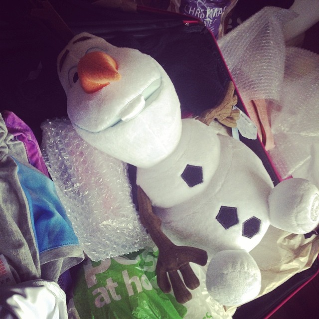 I’m flying to Turkey tomorrow!! In less than 12 hours time I’ll be on the plane, a few thousand feet in the air, hopefully! My flight is due to take off at 11.20am and land around 17.15 Turkish time! I’ve been packing all day – as you can see I’ve only packed essentials – like this giant Olaf from Frozen 😉