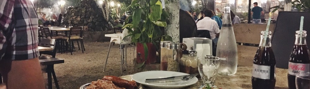 You go in, chose your seat, either a standard table with chairs or a traditional köşk (a wooden seating area with lots of cushions and a low table) and then walk into the restaurant and chose your food. As there isn’t a menu the options vary. There are usually lots of cold meze’s to choose from which you can view behind the glass fridges, and then you chose your meat. They have all sorts of meat, including lamb, chicken and beef. You buy the meat by the kg, which means you can easily overeat…We had peppers, onion and tomato, aubergine salad, steak, lamb skewers, chicken wings, meatballs and sucuk between the two us which was way too much, but we still finished all of it! Once you’ve chosen the meat, you either get them to grill it on their BBQ for you, or they bring the ready-lit BBQ to your table, along with some tongs and the plates of meat and you can cook it all yourself.