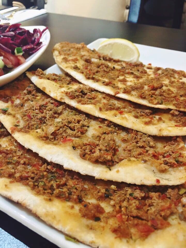 It’s served with salad and lemon. You squeeze the lemon on to the Lahmacun, put some salad on it then roll it up and eat it! So delicious, and because it’s so thin it’s not too unhealthy!